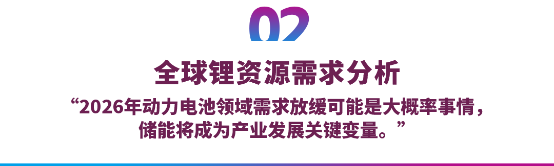 展望2026年,供应端将迎来本轮产能集中投放的最后高峰,中国与非洲项目仍是增产主力,同时澳洲部分矿山可能随锂价回暖而复产。随着非洲锂资源出口条件改善,进口量也有望回升。需求端将保持增长但结构分化:动力市场受国内外政策节奏影响,增速预计放缓,但技术进步与细分领域仍提供支撑;储能市场则在2025年超预期增长的基础上,凭借海内外订单的持续发力,有望成为需求端的关键增长引擎。