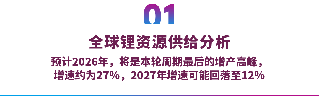 从全球供需平衡角度看,各机构对2025年碳酸锂海内外需求量的统计口径存在差异,预测结果可能不尽相同,但结合同比增速观察,整体形势已趋于明朗。2025年,全球锂资源产量同比增长高于20%,而需求同比增长更高约30%以上,表明供应过剩压力已显著缓解。