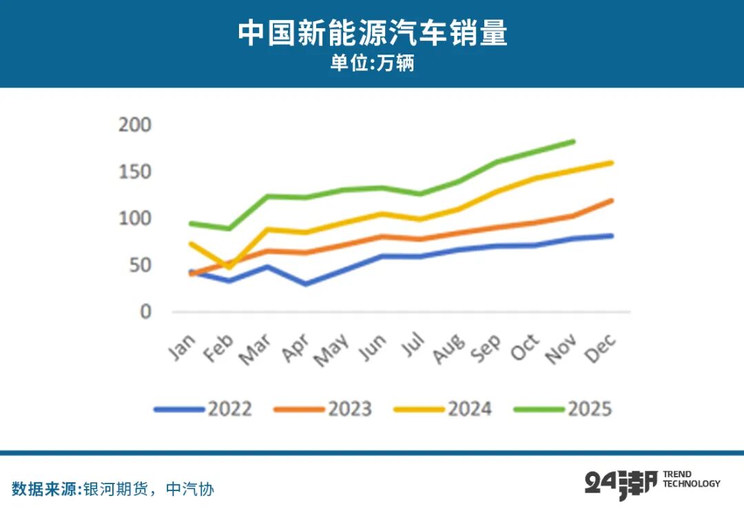 事实上,随着新能源乘用车因部分省市以旧换新补贴额度用尽,10月开始已呈现疲态,12 月冲量效果不明显,依靠商用车的大幅增长,才能保全新能源汽车整体增速。因补贴全面退坡,银河期货预计2026年中国新能源乘用车销量增速达到16%至1780万辆。