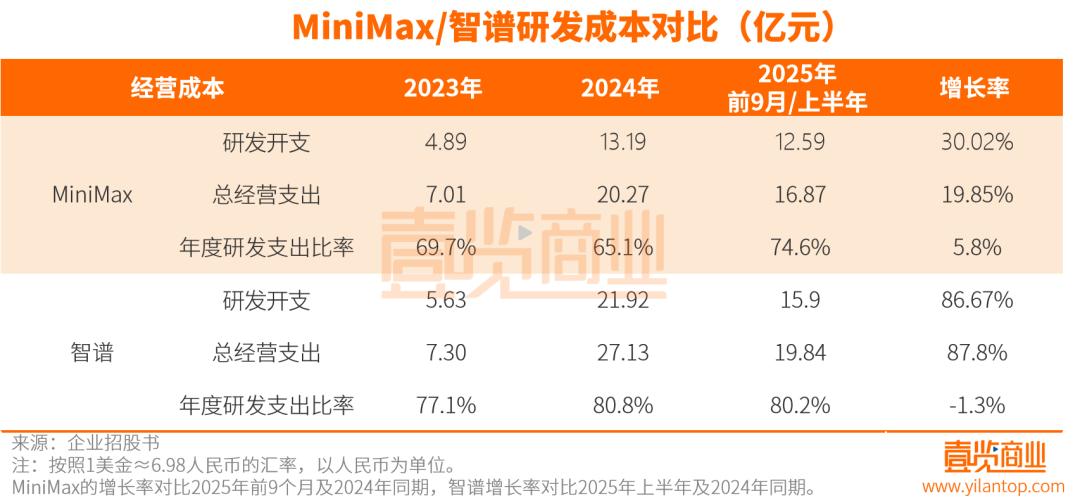 但解决这些问题的前提是,账本上的钱得够烧。过去三年,两家公司合计投入研发资金超过70亿元。MiniMax的研发费用率长期维持在70%左右,智谱则接近80%。