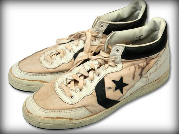 1984年奥运会男篮决赛,美国对阵西班牙队,迈克尔·乔丹在比赛中穿了一双匡威篮球鞋。据美国媒体报道,北京时间6月11日,这双早已磨损的鞋子在拍卖会上拍出19万美元的天价,约合人民币130万元,创造了球鞋拍卖史上的全新世界纪录。