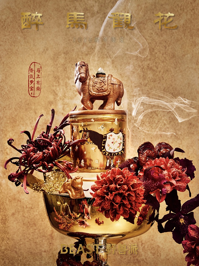 愿你在奔赴新岁的途中,多一分从容,赏一路花开。围绕这一主题,野兽同步推出2026马年限定系列「醉马观花」,将香氛、器物与手作年礼相融,使美好的新年期盼,化为可观赏、可使用、可赠送的日常陪伴。