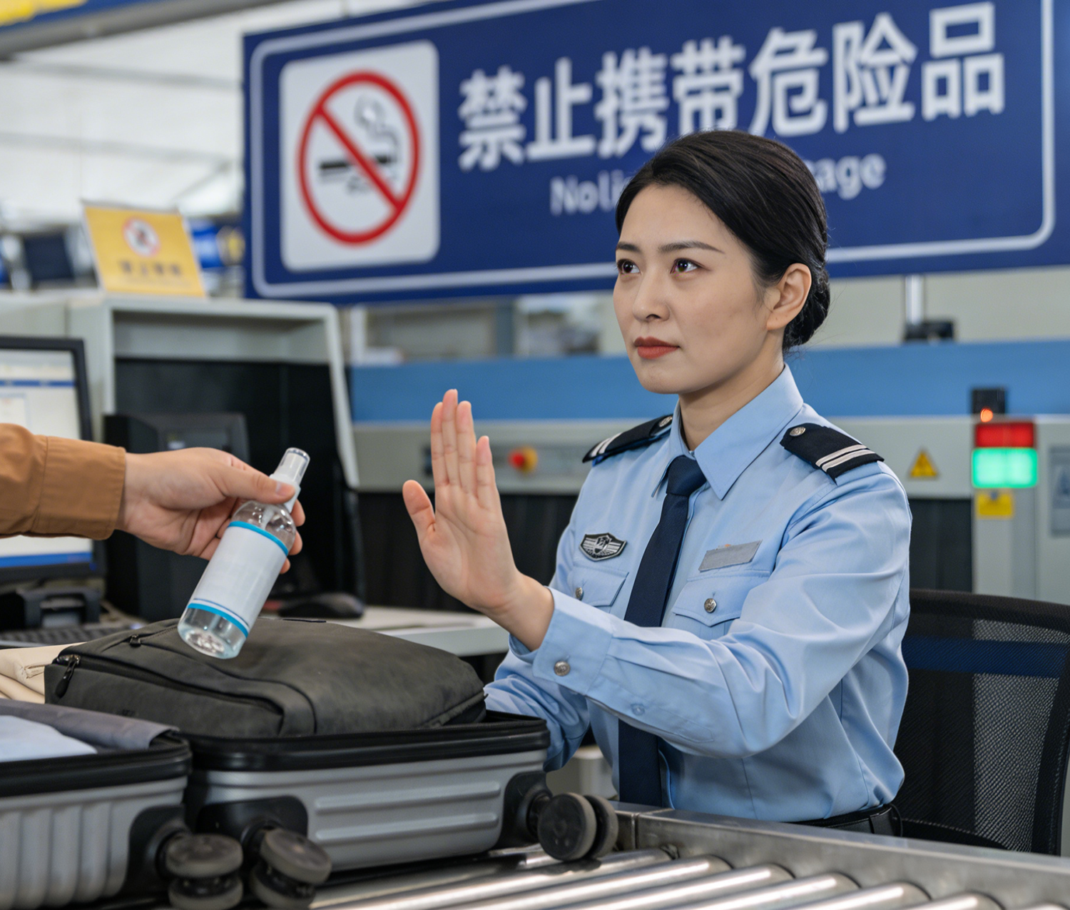 机场、飞机是高频流动、相对密闭的空间,消毒防护几乎成了刚需。但根据《民用航空安全检查规则》及相关管理规定,含有酒精等易燃成分的消毒液属于危险品。当酒精体积分数超过70%时,无论是喷雾、凝胶还是液体,均禁止随身携带或托运。