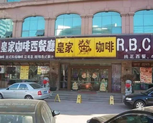 ▲ 大金牙型:密集恐惧症患者看了会不会眼晕?这家咖啡馆门头够长,本着不浪费的原则,门头上信息塞得满满的,但并不意味着表现得越多就越吸引人,反而让人找不到重点。土土的外表却冠以“皇家”称号,是不是有暴发户炫耀大金牙的赶脚?