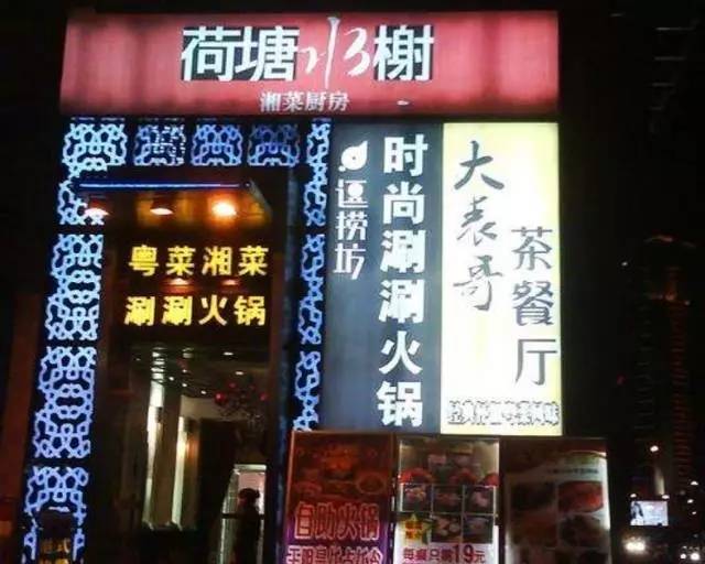 ▲ 三头六臂型:这种情况还挺普遍的,就是多家餐厅共用一面外立面。此时招牌上显示几层几号就十分必要。不要指望顾客去问,顾客通常都是很懒的。