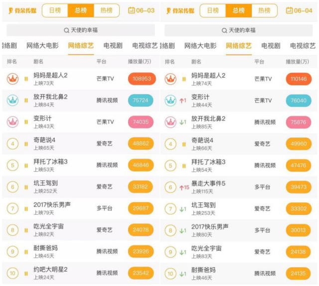 去年,《爸爸去哪儿4》首次通过视频网站播出,获得了巨大成效,不仅为芒果TV在亲子类网络综艺节目中积累了大量成功经验,而且还提高了用户的忠诚度,获得大量粉丝和潜在粉丝。另外,湖南卫视娱乐节目的强实力为芒果TV带去了大量原住民用户,流量十分可观,使得《妈妈是超人》拥有着得天独厚的用户优势。