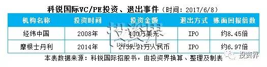 科锐国际IPO后,以6月8日最高股价9.43元计算,其背后资本的今日账面退出回报倍数及此前投资情况如下: