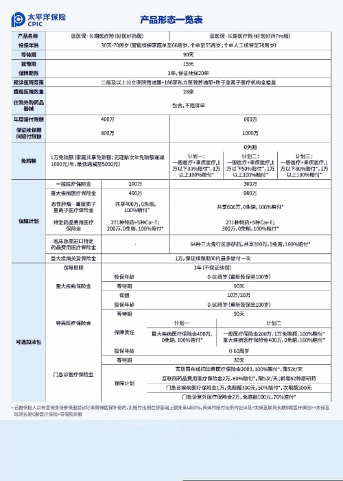 承保公司:太平洋健康险