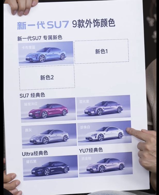 1月15日晚,小米董事长兼CEO雷军在直播中透露,新一代小米SU7将提供9款配色,它保留了前代产品10款配色中的四款,加入SU7 Ultra及YU7经典配色,并提供包括卡布里蓝在内的三款新配色。据了解,预计2026年4月上市的改款小米SU7预售价22.99万元起,小订意向金1000元,上市后可退。配置方面,改款SU7全系标配碳化硅高压平台,全系长续航CLTC续航:标准版720km,Pro版902km,Max版835km;全系标配激光雷达,满配辅助驾驶。
