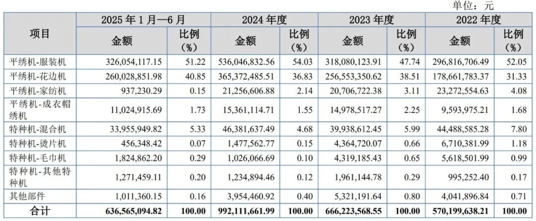 目前,信胜科技的收入主要来自平绣机中的服装机和花边机这两大产品,二者合计贡献的收入约占公司主营业务收入的90%左右。