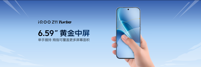 iQOO Z11 Turbo首次在Z系列中采用金属中框+玻璃/玻纤后盖的旗舰级材质组合,告别传统塑料感,带来视觉与触觉双重升级。机身正面采用四边超窄边框设计,6.59英寸黄金中屏配合74.42mm超窄机身宽度,单手握持覆盖面积更大,兼顾视觉沉浸与操作便利性。10.4mm大R角设计贴合掌心弧度,长时间握持不硌手,横竖握持皆舒适。