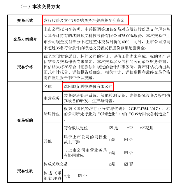 2025年5月,国内横机行业龙头慈星股份公告称拟收购顺义科技并停牌。6月初,其发布重组预案,慈星股份拟向李英顺、中兵国调等10名交易对方发行股份及支付现金购买其合计持有的顺义科技75%股权,并募集配套资金。