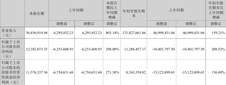 前三季度,北方长龙实现营收1.22亿元,同比增长159.21%;归母净利润1128.85万元,同比实现扭亏为盈。其中,第三季度实现营收5685.69万元,同比增长803.14%;单季实现归母净利润1238.21万元。