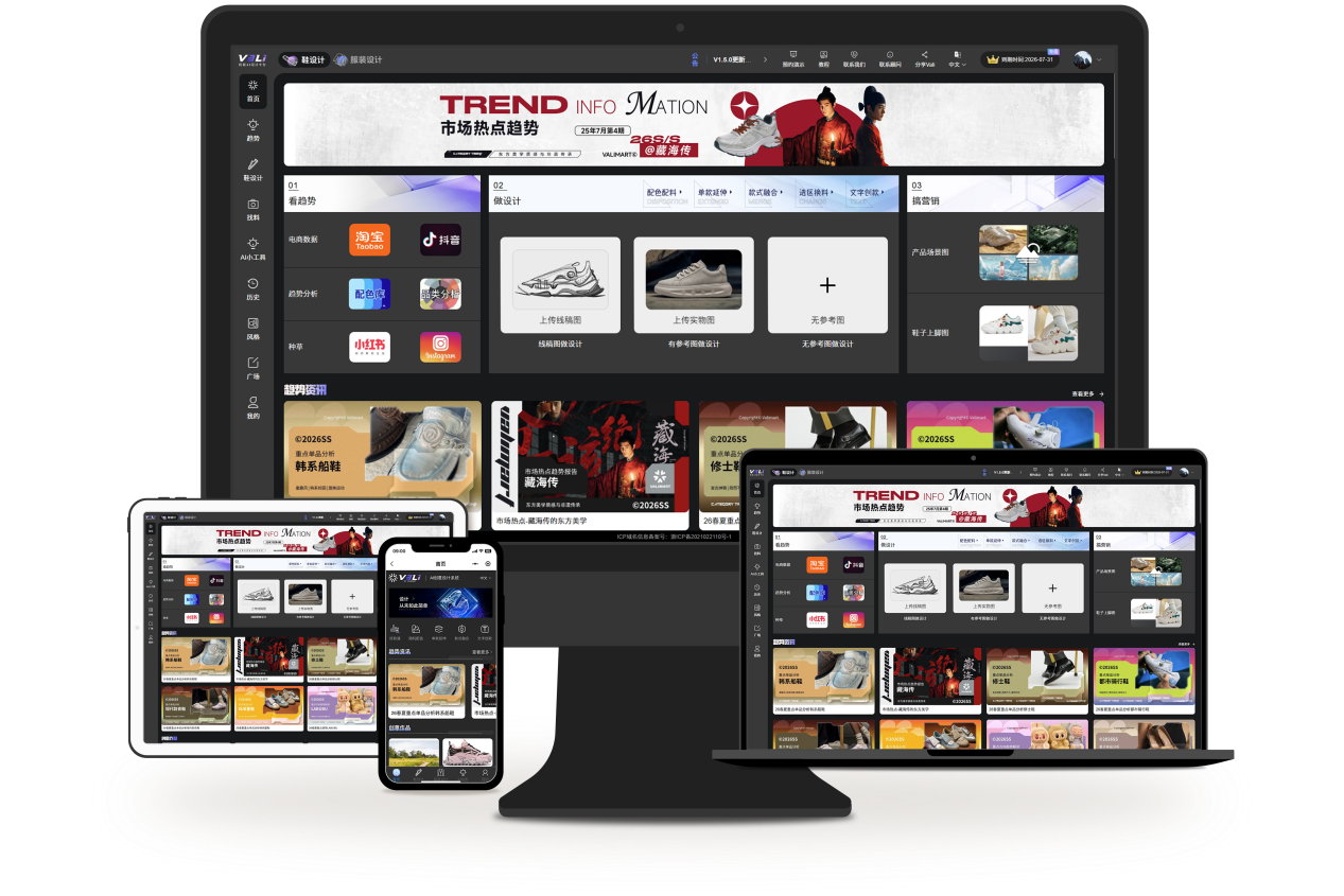 传统鞋服设计依赖设计师经验,流程中从草图到打样耗时久且试错成本高,VALI鞋服AI设计平台则通过数据驱动,构建专业化功能体系。