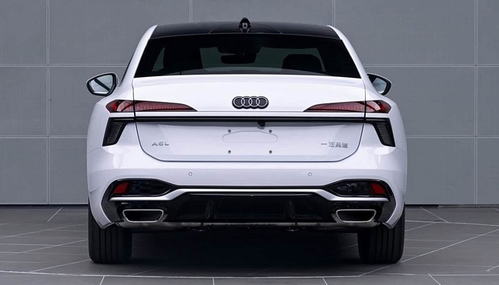 车尾造型延续海外版A6的设计思路,细长尾灯配合横向黑色装饰件,强化视觉宽度,并继续采用双边共双出排气布局。两种外观风格在后包围造型与轮圈配色上亦有所区分,以满足不同用户审美取向。
