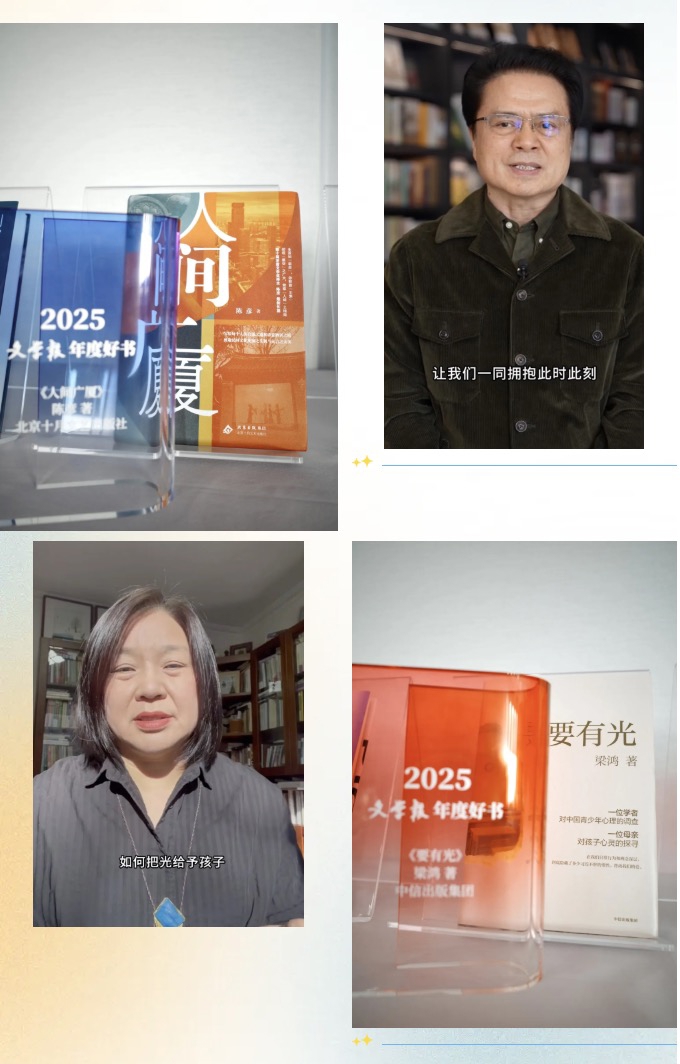 从时代的宏大叩问,到心灵的幽微探照,从跨界的思想激荡,到新锐的破土而出,文学报年度好书不仅仅是一份书单,更是一份时代精神坐标的年度存档。本届年榜的主题“文学未来亦是此时此刻”,正是回应当下文学面临的种种不确定性,此时此刻对文学的坚守、对创新的不懈追求,犹如对文学未来的回答,也正如长篇小说《人间广厦》的作者陈彦在视频感言中所回应的,“我们应该以深切当下的勇气,去融入历史,并走进未来。让我们拥抱此时此刻,并努力携手走向未来。”