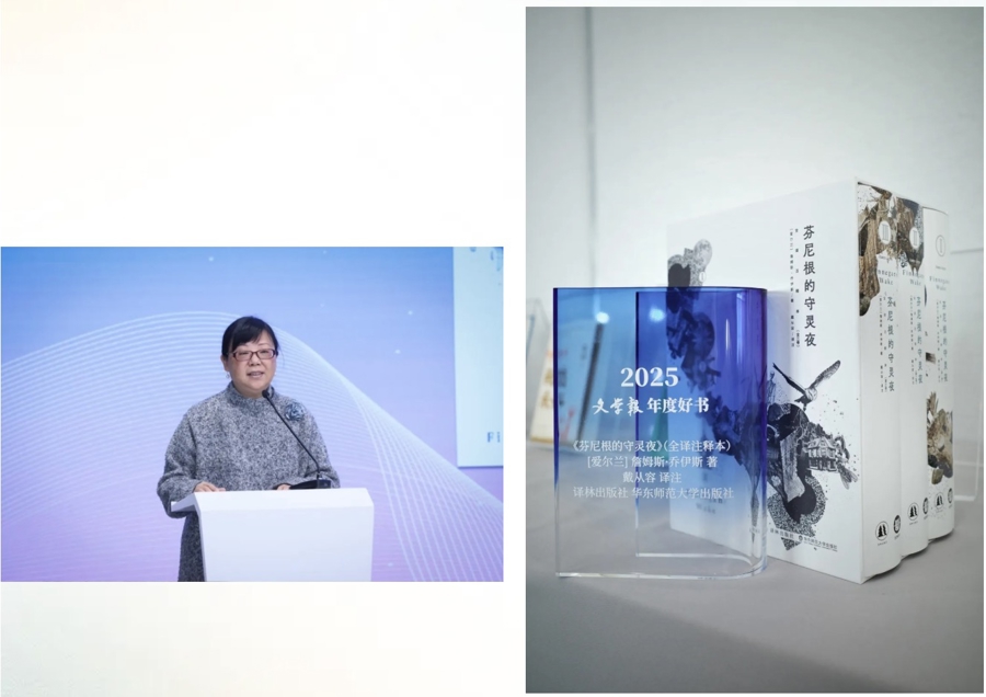 年榜中最厚重的一部书自然是来自乔伊斯的《芬尼根的守灵夜》,翻译家戴从容感慨18年的翻译光阴是孤独的,“翻译的时候就像一个人孤独地走在沙漠里,不知道终点会有掌声和鲜花,所以现在的掌声对我来说尤其珍贵。”有些书或许不会立即找到读者或者很快被理解,它需要阅读的耐心,也暗示了文学的当下如何照向未来,“如果我们平时只能使用从A到R的字母表,《芬尼根的守灵夜》就是把我们的想象力推进到S,甚至T的方向,帮助中国读者进入这部可以令人耳目一新的杰作是我翻译的目标,我希望若干年后有人说,《芬尼根的守灵夜》改变了他。”