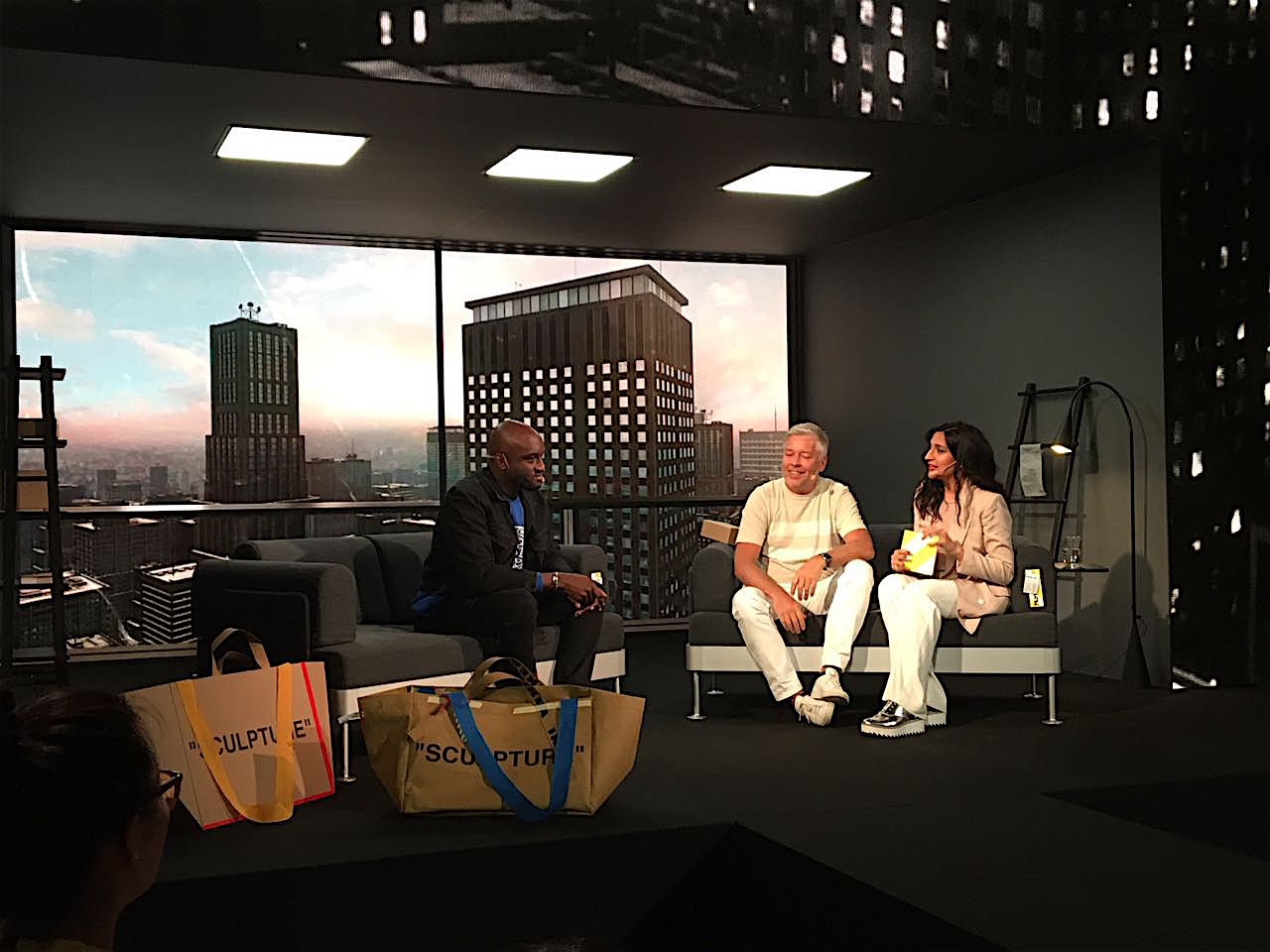 今年6月7日,在总部瑞典小镇阿姆霍,宜家举办了第四次民主设计日。街头潮牌Off-White创始人Virgil Abloh出现在了新品、合作发布的现场。一出场,他就引起了一阵欢呼,拎着两个自己设计的宜家购物袋,印着大写的“雕塑(Sculpture)”。