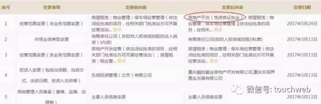 重庆乐视界置业发展有限公司的经营范围也发生了改变,多出的一项是,房地产开发(凭资质证执业)。
