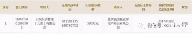 乐视持有的重庆乐视界置业发展有限公司股权质押给了融创(雷帝网配图)