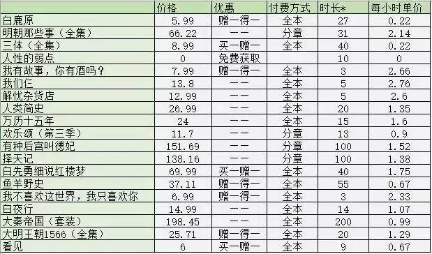 阅读时单价1元左右的书籍(如《人类简史》《择天记》《白夜行》),用户体验良好