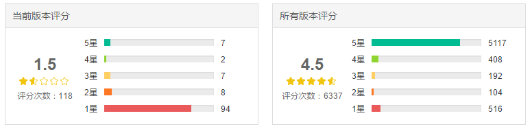微信读书在2017年5月23日推出V1.5.7版本,6月2日推出优化的V1.5.8版本,两个版本新增了FM43.2电台功能,修改时长兑换书币规则,以及其他一系列优化。然而就是这两个改动,造成了新版本剧烈的差评。