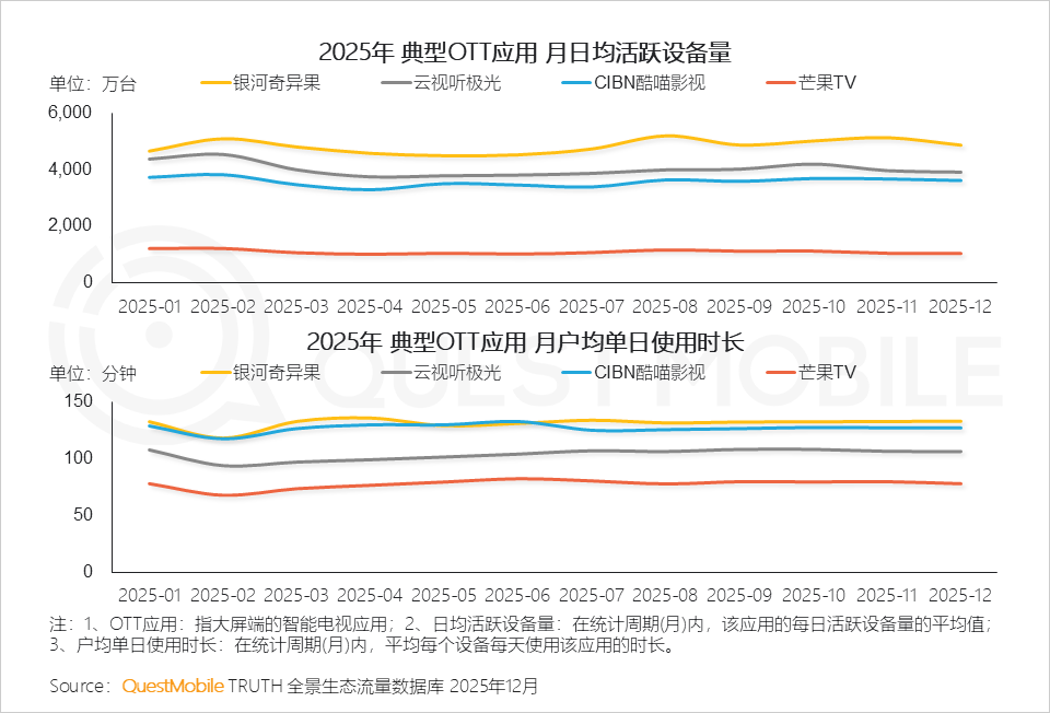 此外,OTT大屏应用端承接家庭场景下的深度观看行为,从重要的补充屏幕转向高价值的核心内容阵地,仍存在增量空间……