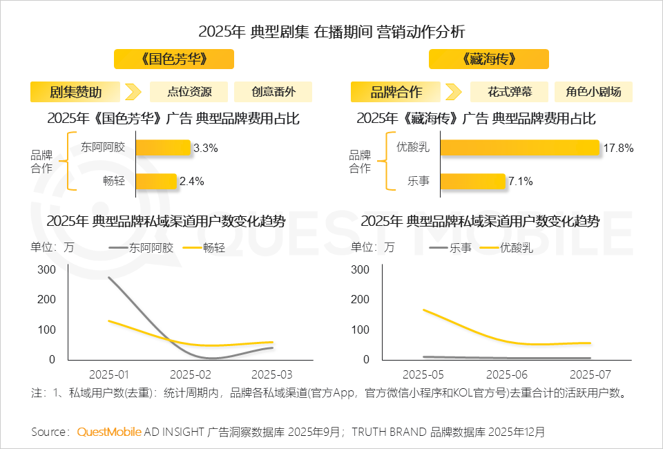 2.4高热度剧集开播前期,吸引众多广告商合作,也为剧集带来预热声量,同时在播放期间,广告主通过贴片/标版、弹幕、衍生剧场等形式丰富营销互动玩法