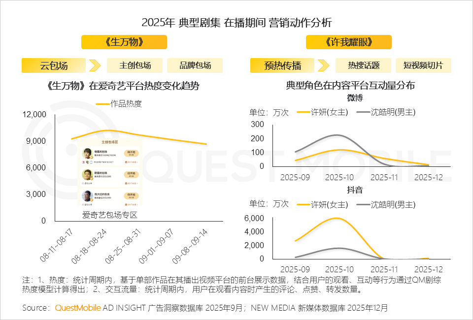 整个2025年,短剧从2024年的“跑马圈地”的态势进入到了“规范+精品”的路径。长视频平台的剧集厂牌运营全面深化,持续有优质作品产出,且收获不俗的口碑。同时,新剧开播的花式营销不断吸引观众的兴趣,内容社交平台也成为了剧集播放效果的助推器。