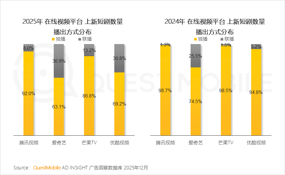 1.2在线视频平台短剧播出形式以独播为主,但联播份额占比提升