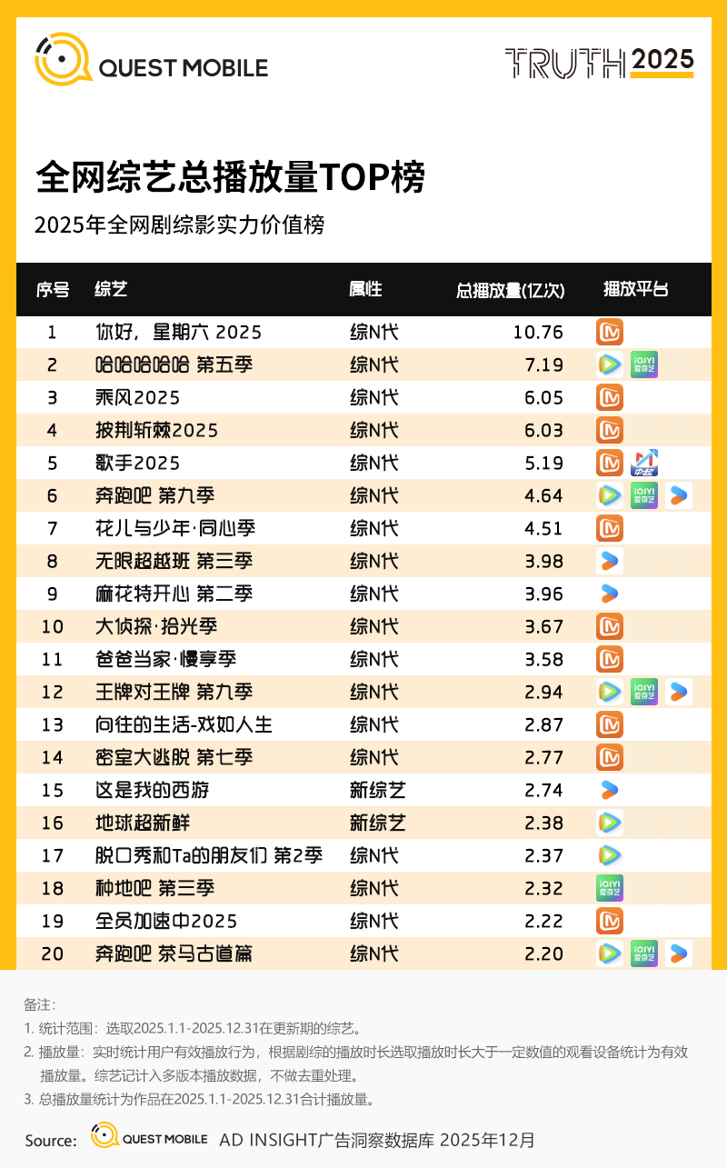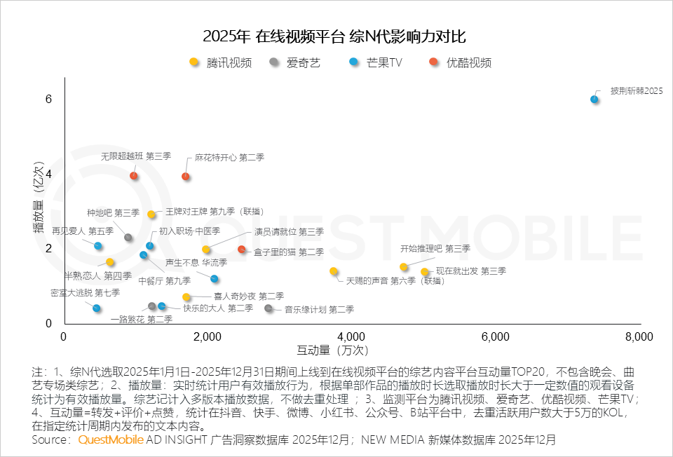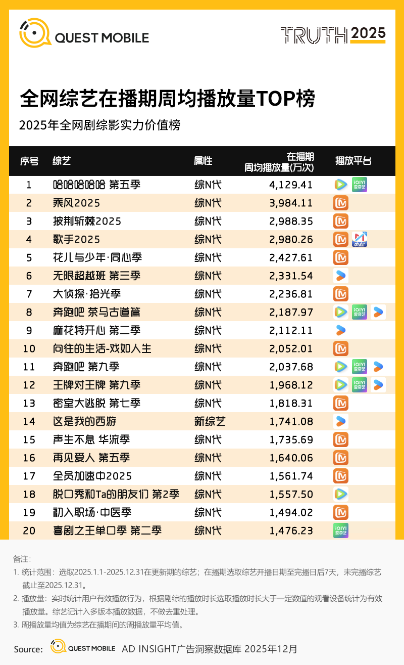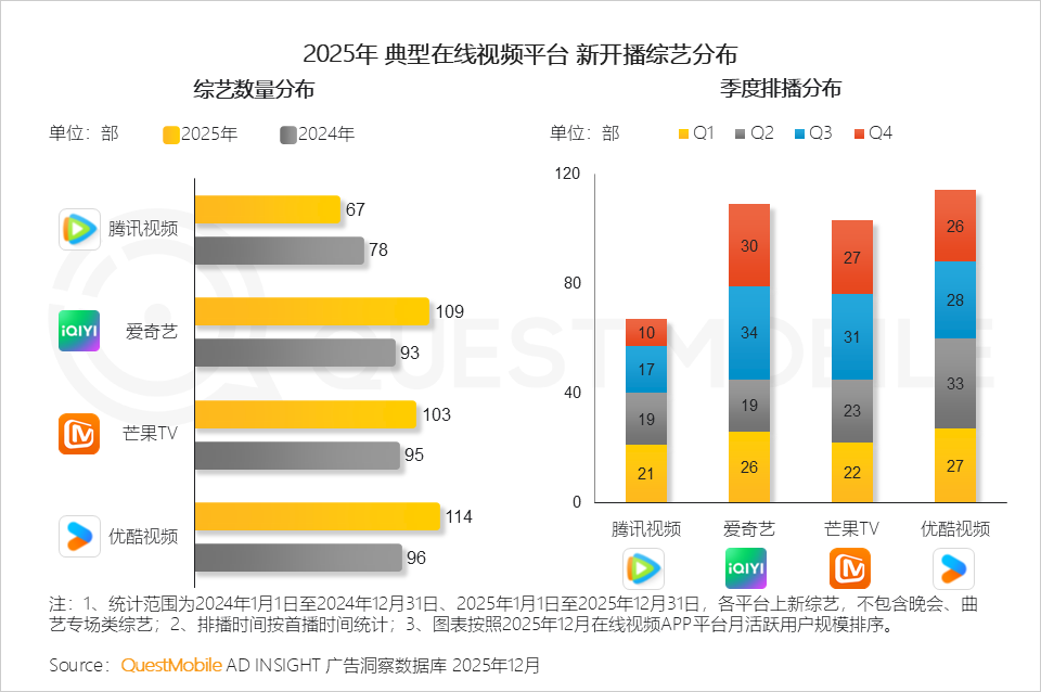 1.12025年头部平台综艺上新数量小幅提升,同时也反映了在复杂竞争环境下,综艺内容投入的重要性