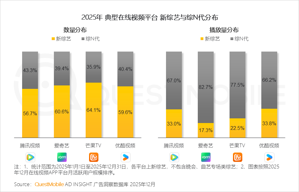 1.2 从上线数量上看,新综艺仍在持续探索,但综N代依旧占据播放量的主导地位