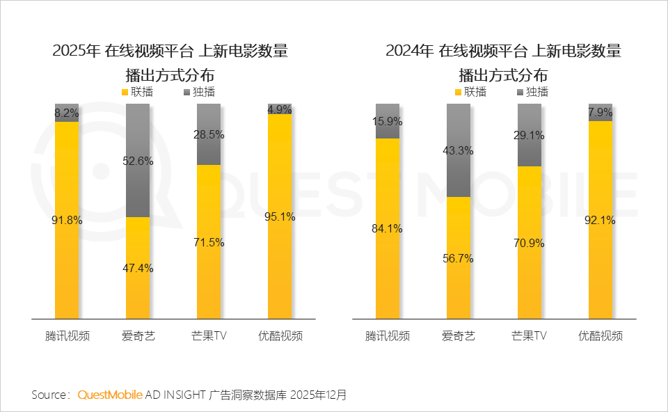 1.3 2025年在线视频平台电影播出形式以联播为主,联播形式进一步强化
