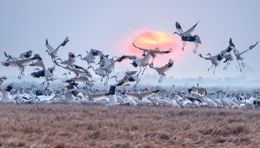 鄱阳湖是中国最大淡水湖、全国首批国际重要湿地,也是亚洲最大的候鸟栖息地,被誉为“珍禽世界”“候鸟天堂”“白鹤王国”。据统计,每年有60万-80万只候鸟到鄱阳湖越冬,全世界90%左右的白鹤、80%以上的东方白鹳、70%以上的白枕鹤都会不远万里飞至鄱阳湖越冬栖息。