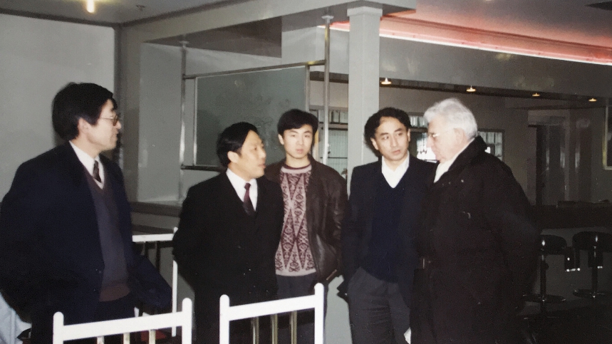 八十年代中期,上海一批老电影艺术家张骏祥、徐桑楚、谢晋、白杨、秦怡、吴贻弓等纷纷倡议要在中国举办国际电影节。1992年,上海市人民政府向国务院申请举办上海国际电影节。同年6月4日国务院办公厅复函同意。1993年3月18~23日,国际制片人协会负责人别雷松(右一)应上海国际电影节组委会邀请,来沪考察上海国际电影节的筹备情况。别雷松考察了上海国际电影节的有关设施,参观了上海影城、大光明和国泰电影院,还参观了上影。别雷松与上海国际电影节副主席吴贻弓、秘书长张元民,组委会委员吴孟辰、中国制片人协会代表于本正等人进行会谈。别雷松对上海国际电影节的硬件设施和筹备工作表示满意,并提出了一些建设性的意见。