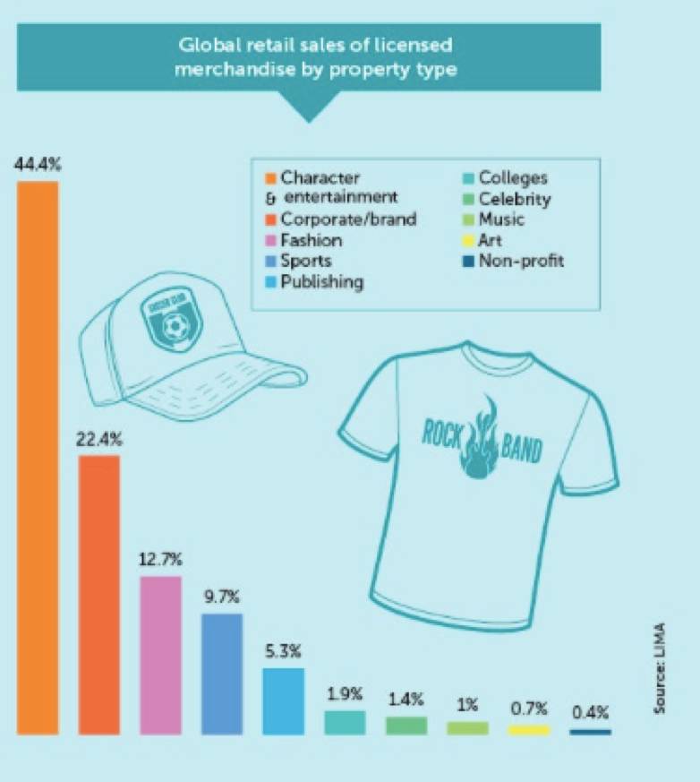 LIMA(授权许可行业商业协会)发布的2016年度全球授权调查显示,全球品牌授权商品销售额依旧稳健增长,2016年全年销售额为2629亿美元,同比2015年增加4.4%。类似sonnyangel这样的娱乐形象角色授权依旧是行业的主体,占整个市场销售额的45%,约为1183亿美元。亚洲地区是这一行业在全球增长最快的区域,销售额年增速为6.8%。