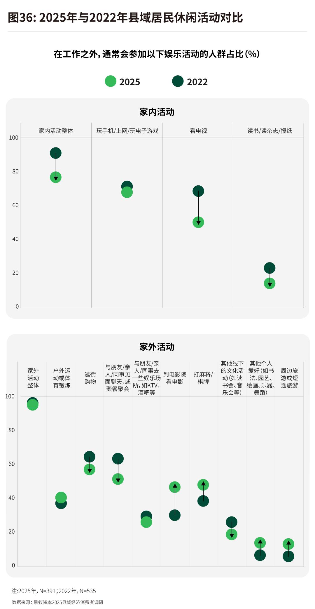 从县域消费者参与的休闲活动来看,疫情之后他们减少了在家看电视、阅读等传统活动,转而更多地走向电影院、棋牌室;并开始探索个人爱好与短途旅行,尽管基数仍小,但增速亮眼,一定程度反映出县域居民对个性化、体验式休闲的需求正在觉醒。