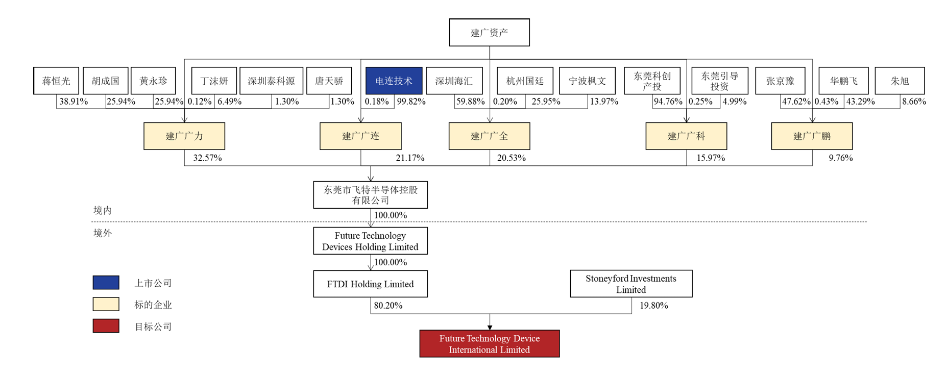 2021年,电连技术通过建广广连基金持有东莞飞特21.17%的股权,后者拿下FTDI80.2%的权益。然而,因英国政府下达强制出售令且司法复核失败,包括电连技术在内的中资财团持有的FTDI 股权,被要求在规定时间内处置。
