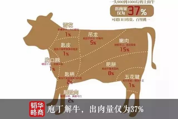为让消费者清楚知道吃的是牛的哪个具体部位,店家还会在菜单上贴一张详细解读牛各个部位的图,让人一目了然。