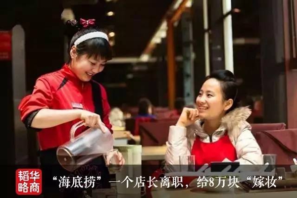 甚至,在海底捞还有“嫁妆”一说。一个店长离职,只要任职超过一年以上,给8万块的嫁妆,就算是这个人被竞争对手“小肥羊”挖走了,也给。