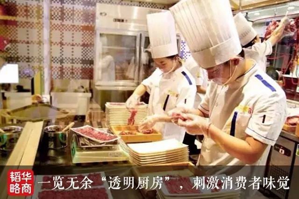 它的第一大卖点就是颠覆掉过去的传统,打开厨房,牛肉“现切现卖”。