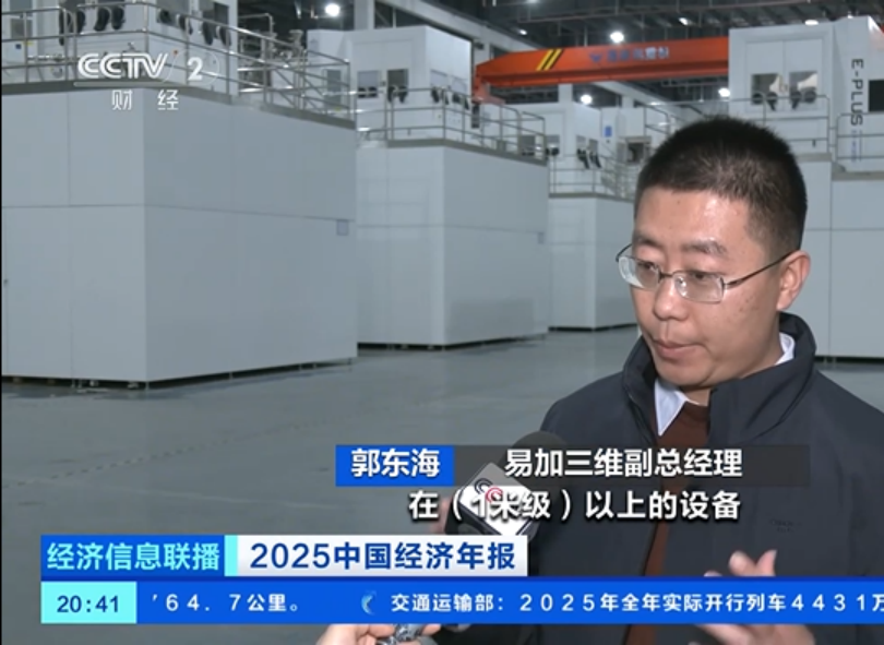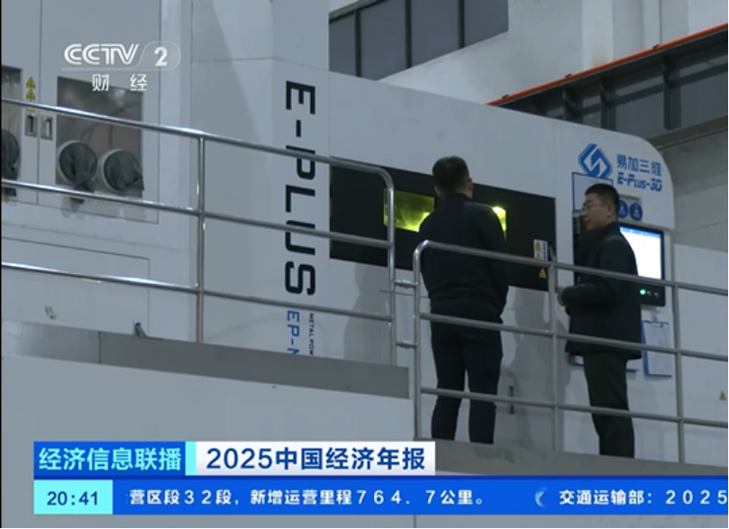 近日,国家统计局发布2025年度核心经济数据。中央电视台推出《2025中国经济年报》特别节目,在航天强国建设方面,国内金属3D打印设备龙头—杭州易加三维增材技术股份有限公司作为国家新质生产力的代表接受了央视的采访。易加增材以硬核实力与精密“智”造,生动诠释了科创企业助力航天强国建设的不平凡之路。