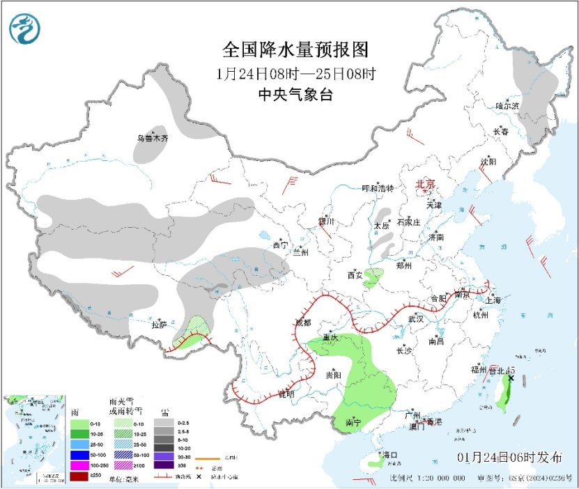 中央气象台1月24日消息,气象监测显示,昨日,我国总体为降水稀少、气温回升的状态。今天,这种状态仍将持续,但华北中南部、黄淮中西部、陕西关中地区、江淮大部等地大气扩散条件较差,有轻至中度霾,部分地区有重度霾,请公众做好防护。