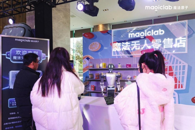 为了持续推进具身智能规模化落地与多层次生态计划建设,魔法原子进一步拓展“具身智能+X”的应用边界,在商业场景中,围绕“无人化”门店空间解决方案率先打造先行落地路径。不同于传统“无人化”方案,魔法原子机器人门店是以具身智能机器人为核心,构建覆盖服务执行、交互协同与运营支撑的商业基础服务单元。