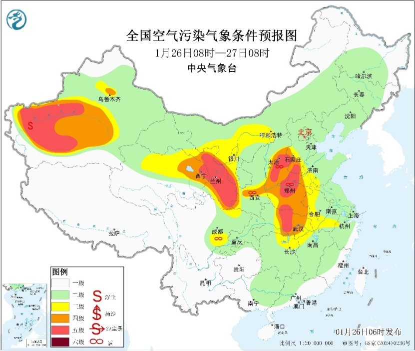 中央气象台1月26日消息,昨日,北方多地再次受到弱冷空气影响,其中陕西、山西等地出现小雪或雨夹雪;内蒙古中西部、宁夏及青海等地出现6~8级、局地9级以上阵风,上述部分地区及甘肃中东部、陕西北部和西部等地伴有扬沙或浮尘。今晨,内蒙古西部、陕西北部、宁夏、青海等地出现6~8℃降温,局地降幅达10℃以上。