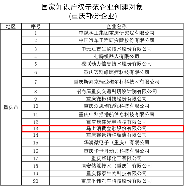 近日,国家知识产权局公示了2025—2027年国家知识产权强国建设示范创建对象评审结果。马上消费金融股份有限公司(以下简称“马上消费”)凭借在技术研发和专利布局上的深耕,成功入选“国家知识产权示范企业创建对象”名单。