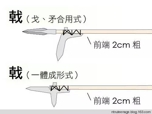 而到了南北朝以后,华夏族与塞外骑马民族的进一步融合,加之马鞍的大量装备,战车这一曾经的重要战阵工具对上骑兵时因过分不灵活,而成为鱼肉,最终战车退出了战场。战车使用的长戈也退出战场,而步兵为了对付正面冲击的骑兵部队,开始在戈的基础上加上枪头,成为戟。