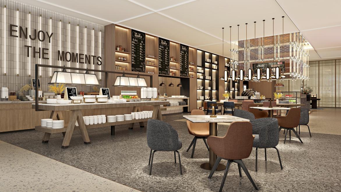 作为万达酒店及度假村在珠海的首店,聚焦中高端生活方式体验。其设计由万达酒店设计院倾力打造,灵感萃取珠海海洋元素与岭南文脉,在粗砺工业风中融入海浪线条与金属质感,营造兼具城市张力与文化深度的旅居空间,为商旅与休闲客人提供智能、时尚且充满社交活力的下榻选择。