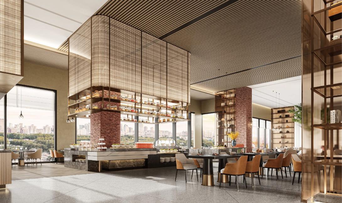 该项目坐落于北京奥林匹克核心区,毗邻鸟巢、水立方等国家地标,坐拥奥森公园城市绿肺与都市天际线景观。两间酒店将高效承接国家会议中心、亚洲金融大厦等区域的商务需求,同时连接城市休闲与自然生态,成为集商务、生活与活力于一体的都市枢纽。