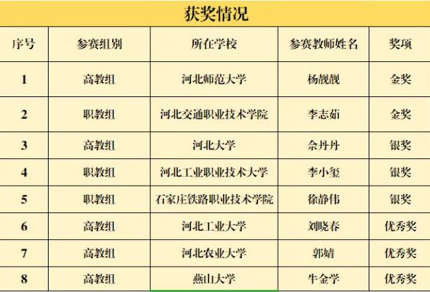 1月22日,第三届全国大学生职业规划大赛课程教学赛道全国总决赛在天津师范大学圆满落幕,通过省赛和国赛网评脱颖而出的100所高校进入现场赛,决出金奖20个、银奖35个、铜奖45个。河北省5所院校晋级全国总决赛,斩获2金3银的优异成绩,获奖数量位居全国前列。